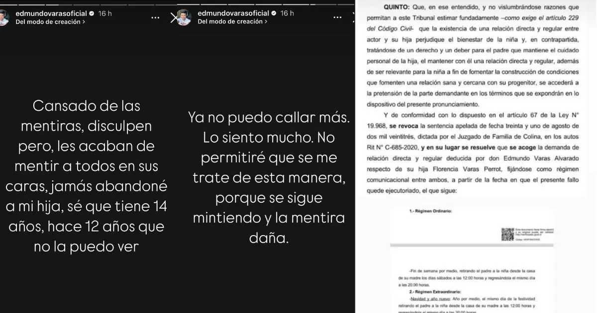 Edmundo Varas reveló un documento legal que evidencia la existencia de una resolución del Tribunal de Familia de Colina, fechada el 31 de agosto de 2023, que establece una relación directa y regular entre él y su hija.