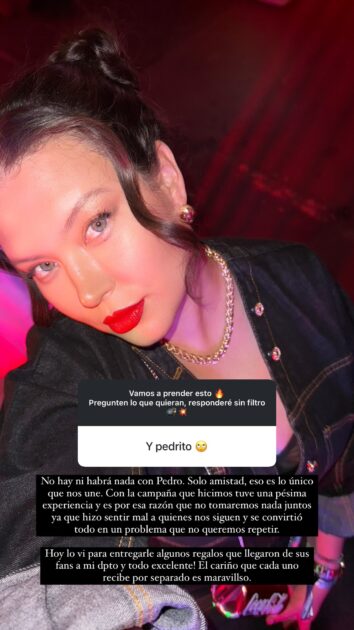 “No hay ni habrá nada con Pedro. Solo amistad, eso es lo único que nos une”, partió aclarando de forma enfática.
