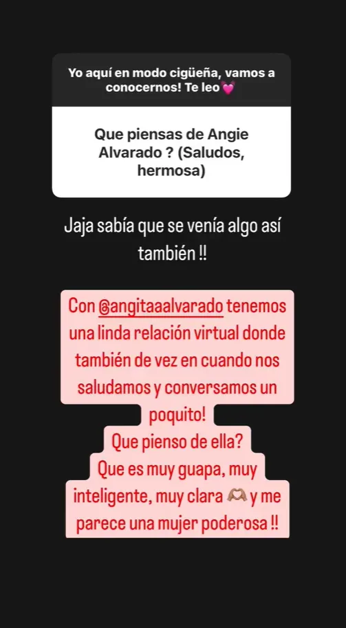 "Con Angie tenemos una linda relación virtual, donde nos saludamos y conversamos un poquito", reveló.