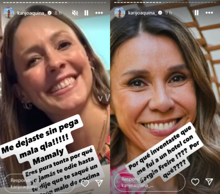Karina Valenzuela, la supuesta amante de Sergio Freire, arremetió en contra de Maly Jorquiera y Ceci Gutiérrez, acusándolas de perjudicar su trabajo y ventas en su emprendimiento. A través de historias en Instagram, Valenzuela insultó a Jorquiera y cuestionó sus presentaciones en vivo, acusándola de dejarla sin trabajo. Además, Valenzuela amenazó a Gutiérrez con hacerla confesar que es mentira que se haya juntado con Freire en un hotel.