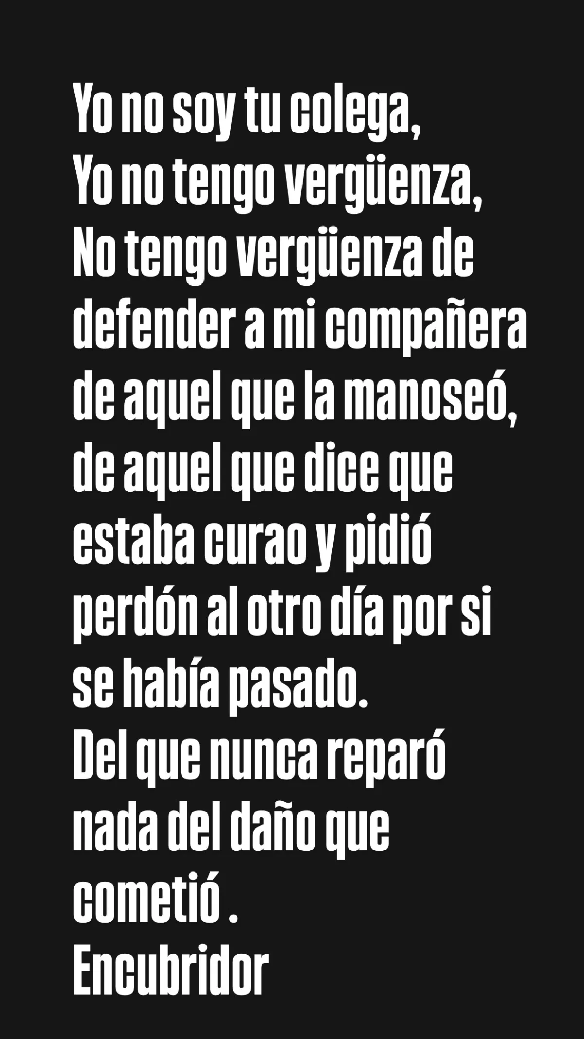 "Del que dice que estaba curado y pidió perdón al otro día si se había pasado. Del que nunca reparó el daño que cometió. Encubridor", añadió la actriz en sus historias de Instagram.