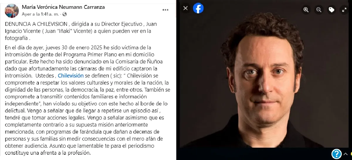 "El día de ayer, jueves 30 de enero de 2025, fui víctima de la intromisión de gente del programa Primer Plano en mi domicilio particular", señaló Verónica Neumann.