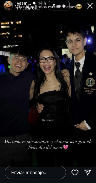 La actriz Yasmín Valdés celebró el Día del Amor junto a sus tres hijos: Anahí, Rafael y Andrés, los dos últimos fruto de su relación con el exproductor Nicolás Quesille. Aunque su relación no terminó en buenos términos debido a denuncias de violencia intrafamiliar, actualmente mantienen una relación cordial por el bienestar de sus hijos. En una foto del Día de los Enamorados, Yasmín mostró orgullo por sus hijos y lo grande que están.