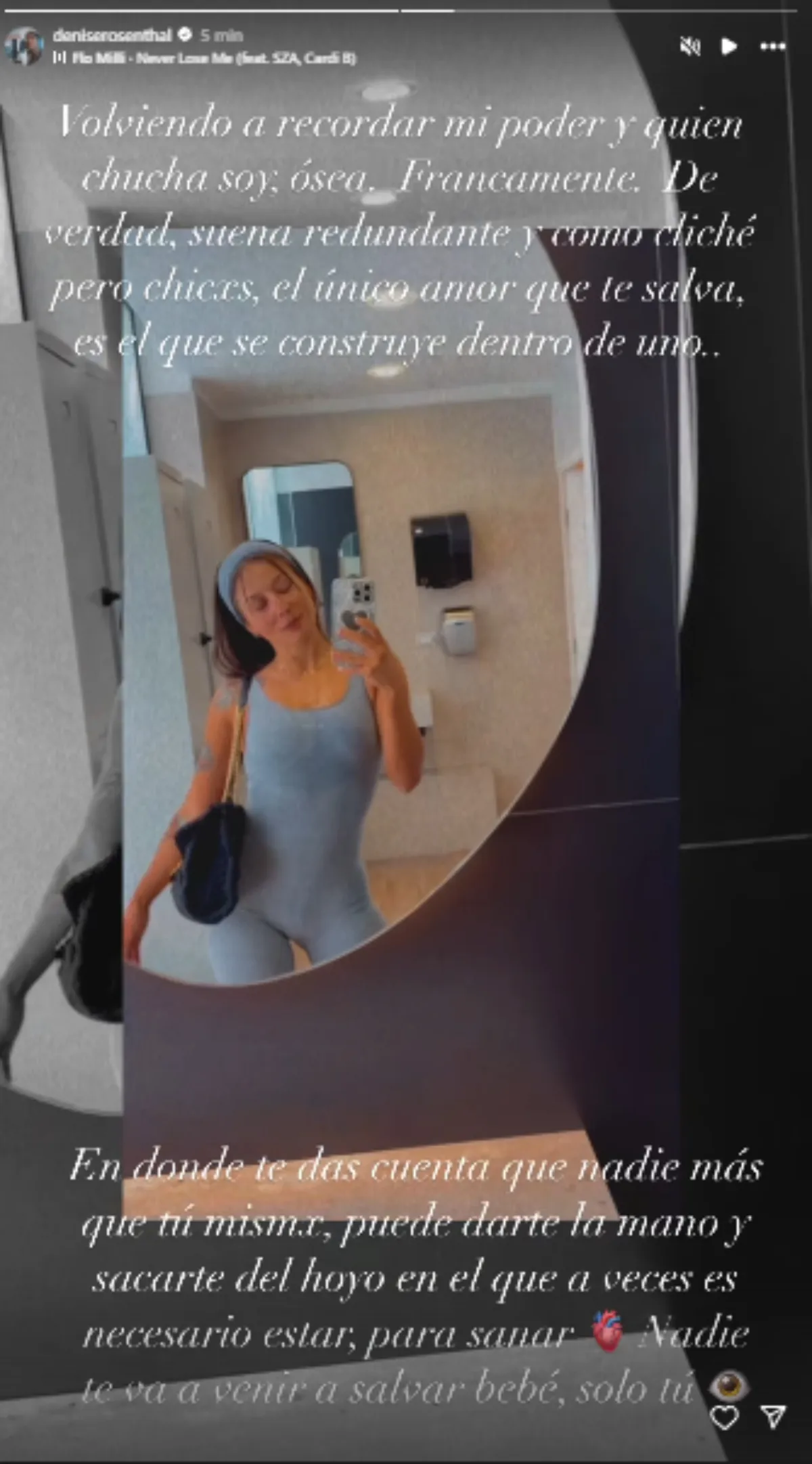 Luego de aquello, Denise Rosenthal se alejó de redes sociales y volvió hace una semana, donde contó sobre su recuperación tras someterse a una cirugía producto de una hernia que le generaba bastante dolor.
