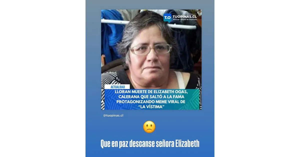 El comediante Pedro Ruminot lamenta la muerte de Elizabeth Ogaz Orrego, creadora de la popular frase "se hace la 'vístima'", tras una larga lucha contra la diabetes. En su presentación en el Festival de Viña del 2025, Ruminot había planeado hacer varios chistes sobre ella y subirla al escenario, pero debido a su salud delicada, decidió no hacerlo. Tras enterarse del fallecimiento de Elizabeth, el humorista le rindió un emotivo homenaje en redes sociales. "Que en paz descanse, señora Elizabeth", expresó.