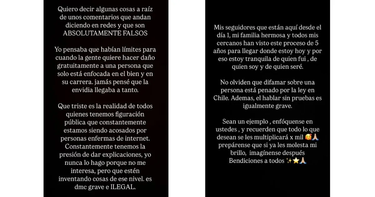 A través de sus historias de Instagram, Fran Maira expresó que "quiero decir algunas cosas a raíz de unos comentarios que andan diciendo en redes y que son absolutamente falsos".