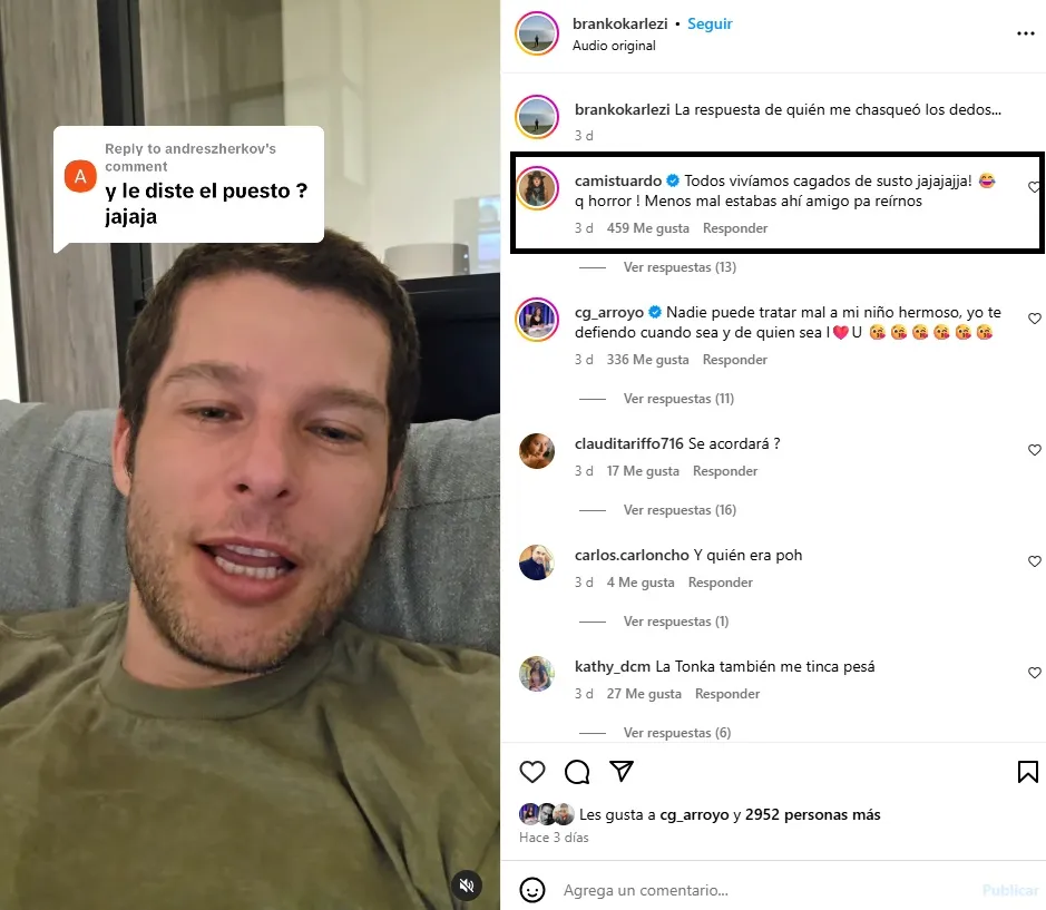 Por su parte, Branko respondió: “Amo que tenga testigos, jajaja”.