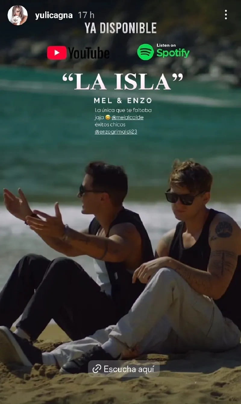 En sus historias de Instagram, la trasandina compartió la promoción de La isla, la nueva canción que Mel estrenó junto a Enzo, debutando como cantante.