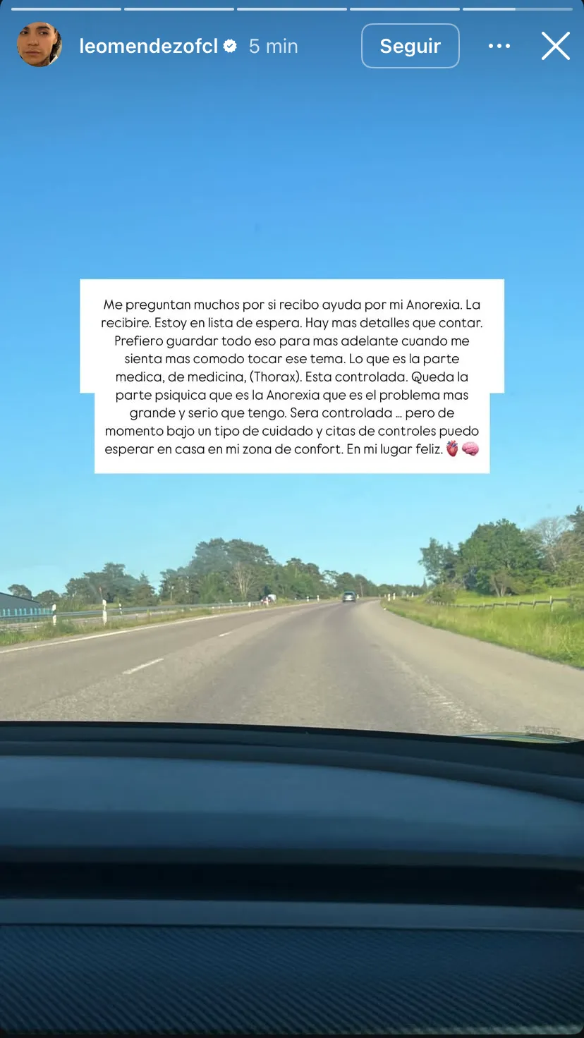 Con total honestidad, Leo habló también sobre cómo su diagnóstico de anorexia nerviosa afecta su recuperación: “Entiendo que mi camino de recuperación es más largo de lo normal y más duro que el de una persona ‘sana’ de mente".