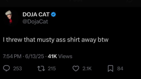 “Hueles increíble”, le dijo Doja Cat en ese momento. Pero su percepción real era otra. Más tarde, la cantante, cuyo verdadero nombre es Amala Dlamini, usó su cuenta en X para sincerarse en una serie de publicaciones que después eliminó.