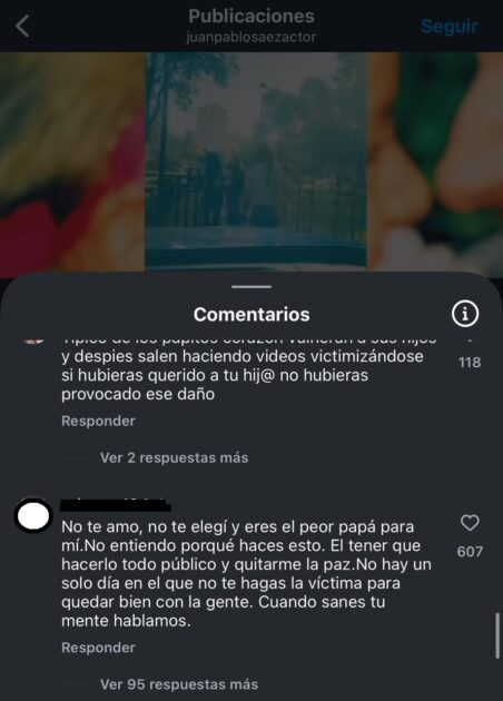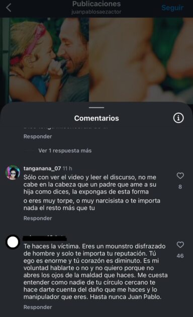 En las mismas publicaciones, la hija de Juan Pablo Sáez decidió responderle con duras palabras, asegurando que su padre “se hace la víctima”.