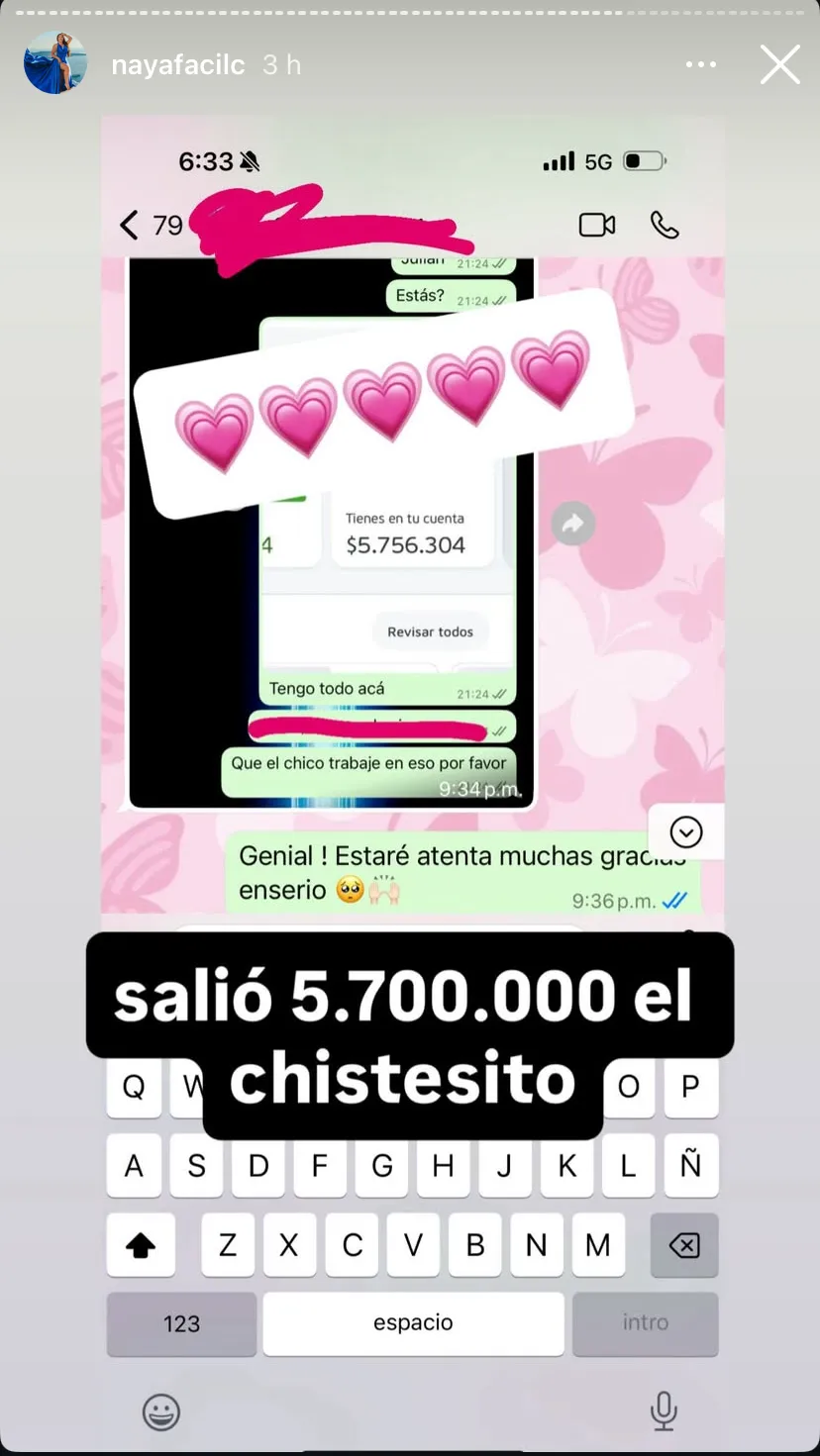 "Pero adivinen qué, no los pagué yo. Creo que por primera vez me hacen un regalo", contaba Naya Fácil en sus historias de Instagram.