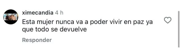 Ximena no dudó en comentar en la publicación, que posteriormente borró: "Esta mujer nunca va a poder vivir en paz, ya que todo se devuelve", escribió.