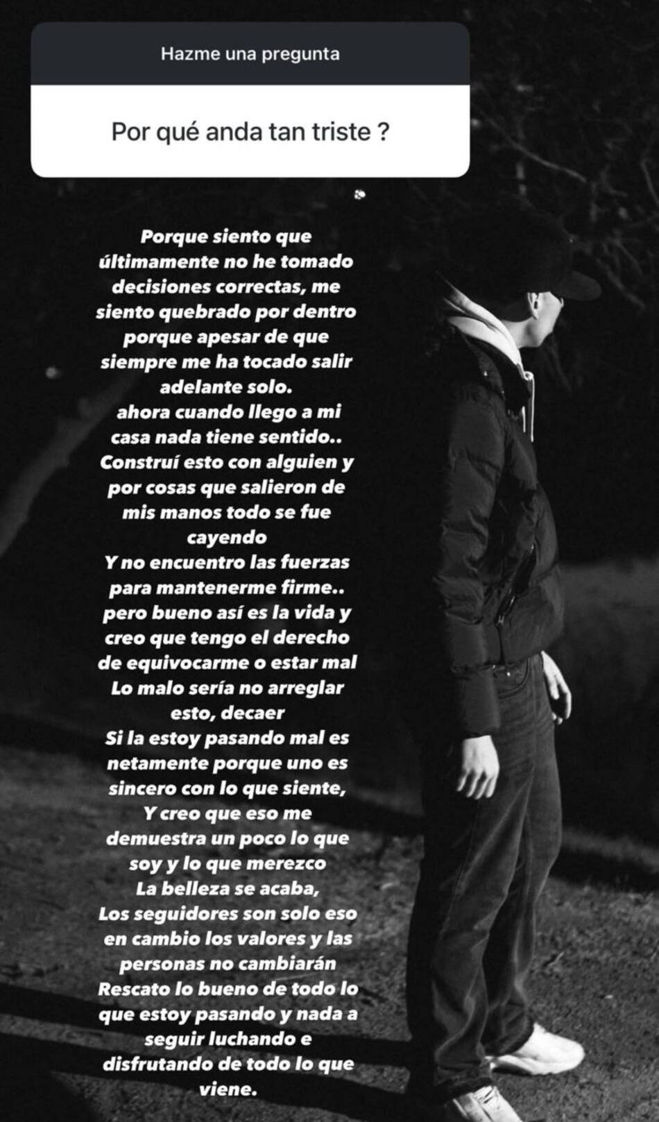 "Últimamente, no he tomado decisiones correctas, me siento quebrado por dentro", compartió.