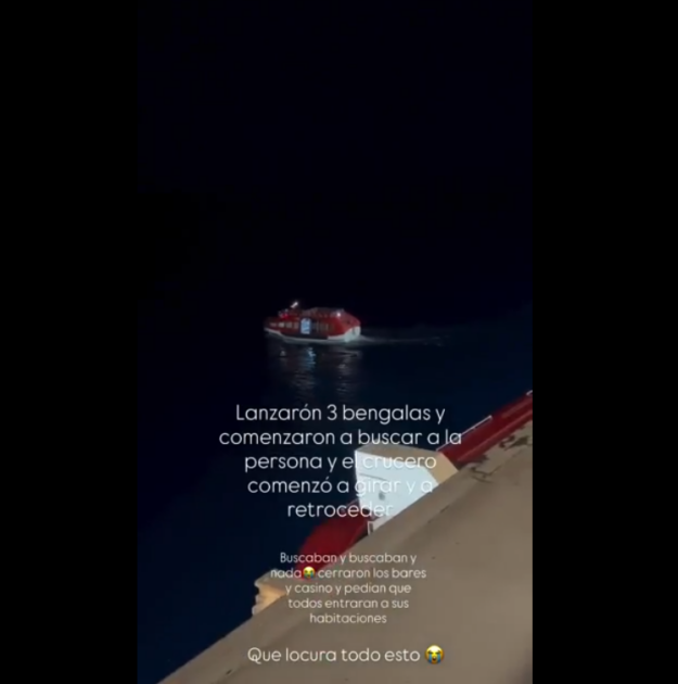 "Lanzaron tres bengalas y comenzaron a buscar a la persona y el crucero comenzó a girar y a retroceder. Buscaban y buscaban y nada", precisó.