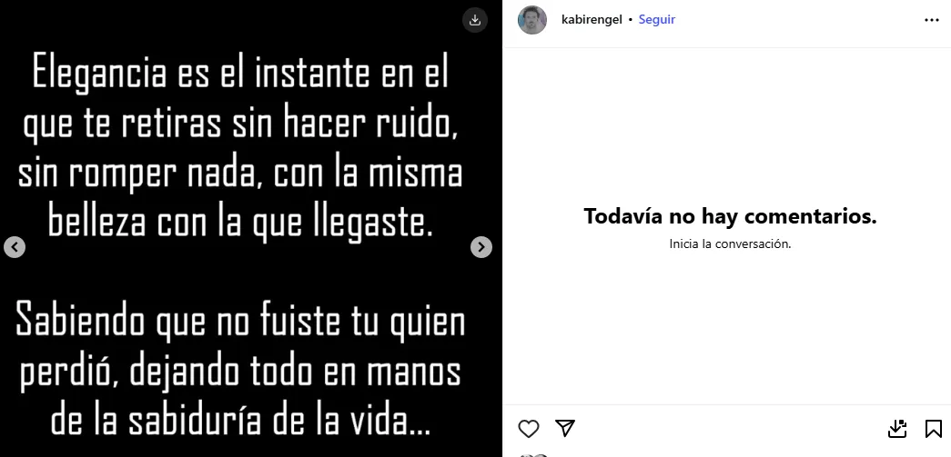 Tras el revuelo de la noticia, causó extrañeza una publicación de Kabir en Instagram de hace cuatro días, donde si bien no menciona a Carola Varleta, seguidores apuntaron a que se refería a ella.