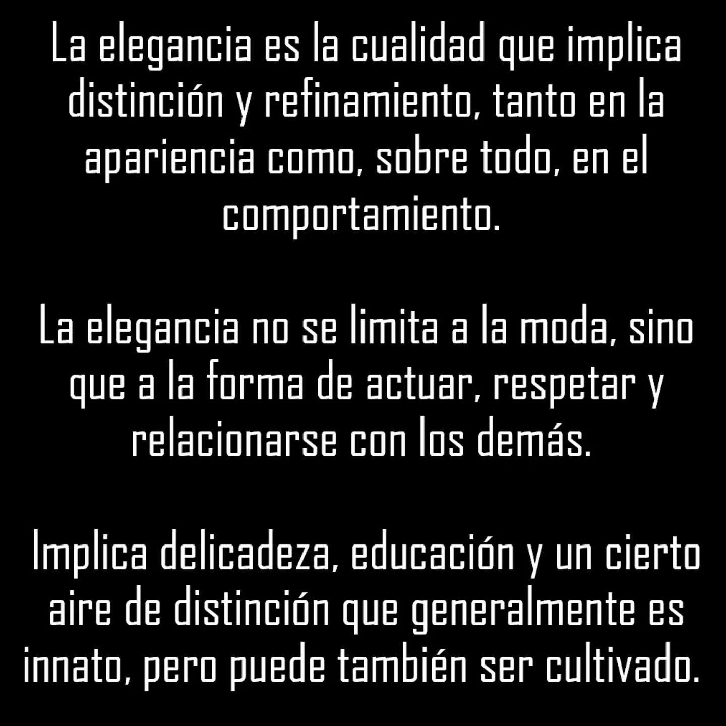 "La elegancia no se limita a la moda, sino que es la forma de actuar, respetar y relacionarse con los demás. Implica delicadeza, educación y un cierto aire de distinción que, generalmente, es innato, pero también puede ser cultivado".
