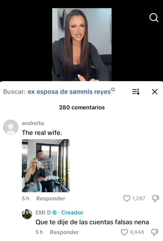 “The real wife (la verdadera esposa)”, escribió la cuenta sin fotografía. Frente a ello, Dides respondió: “Qué te dije de cuentas falsas, nena”, según consignó AR13.