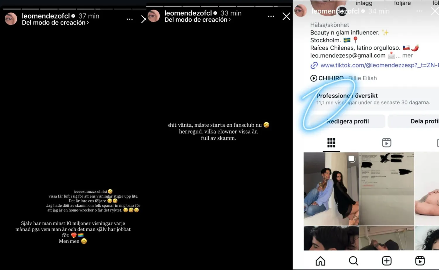 Leo Méndez Jr. arremete contra Ellinore de Silva, actual pareja del exnovio de su hermana Steffi, Dante Lindhe. Ellinore revela en redes sociales la difícil situación tras terminar la relación con el cantante, incluyendo denuncia a servicios sociales. La polémica se intensifica con la supuesta infidelidad, mientras De Silva destaca por 2.6 millones de visitas en Instagram en 30 días. Méndez Jr. responde con fuertes comentarios, comparando su popularidad en redes y lanzando graves acusaciones en sueco contra De Silva.