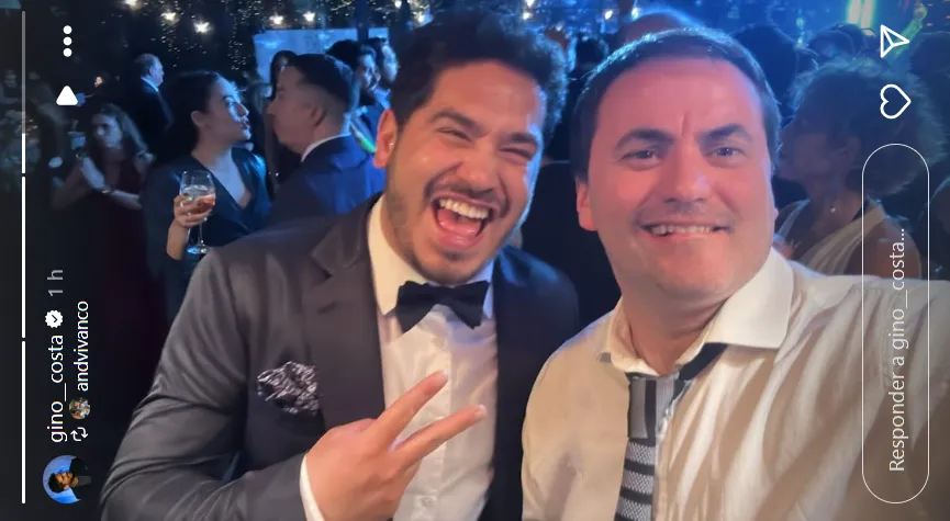 En otra publicación, Gino Costa reposteó una imagen junto al también periodista, Andrés Vivanco, en donde se puede apreciar una parte de los invitados compartiendo en la fiesta posterior a la ceremonia.