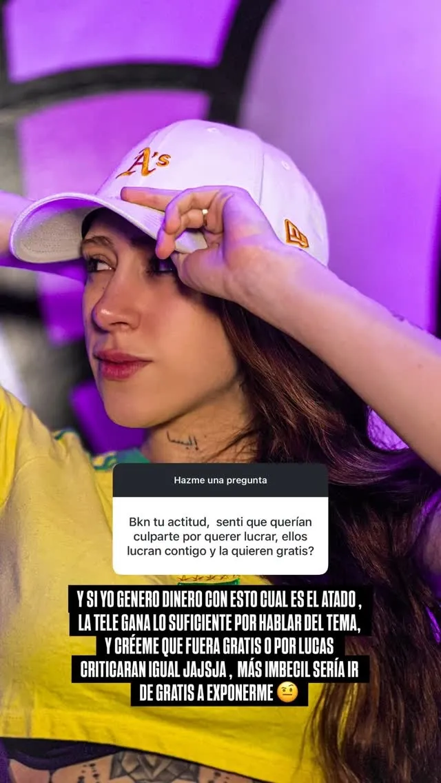 Por último, aseguró que "si yo genero lucas con esto, cuál es el atado. La tele gana lo suficiente por hablar del tema y créeme que si fuera gratis o por lucas, criticarían igual. Más imbécil sería ir gratis a exponerme".