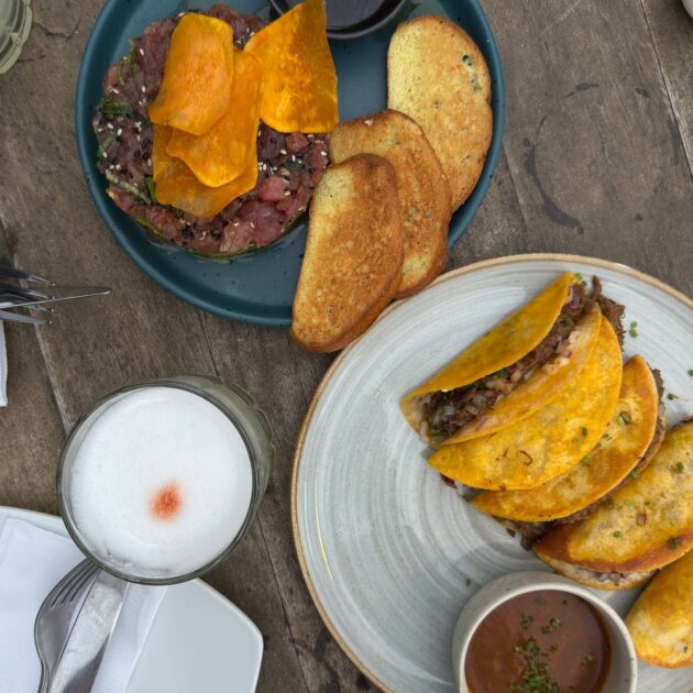 “Del fin de semana”, escribió la influencer, donde aparece posando en una primera postal con un hombre joven, seguida de una apetitosa comida, y una panorámica del mar.