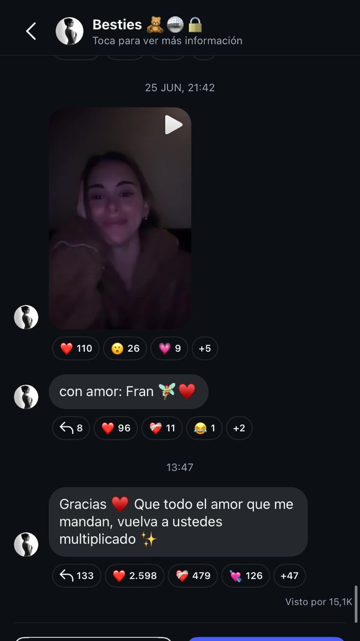 Sin embargo, este martes la influencer rompió el silencio a través de su canal de difusión 'Besties' en Instagram, donde entregó un breve, pero sentido mensaje a sus seguidores.