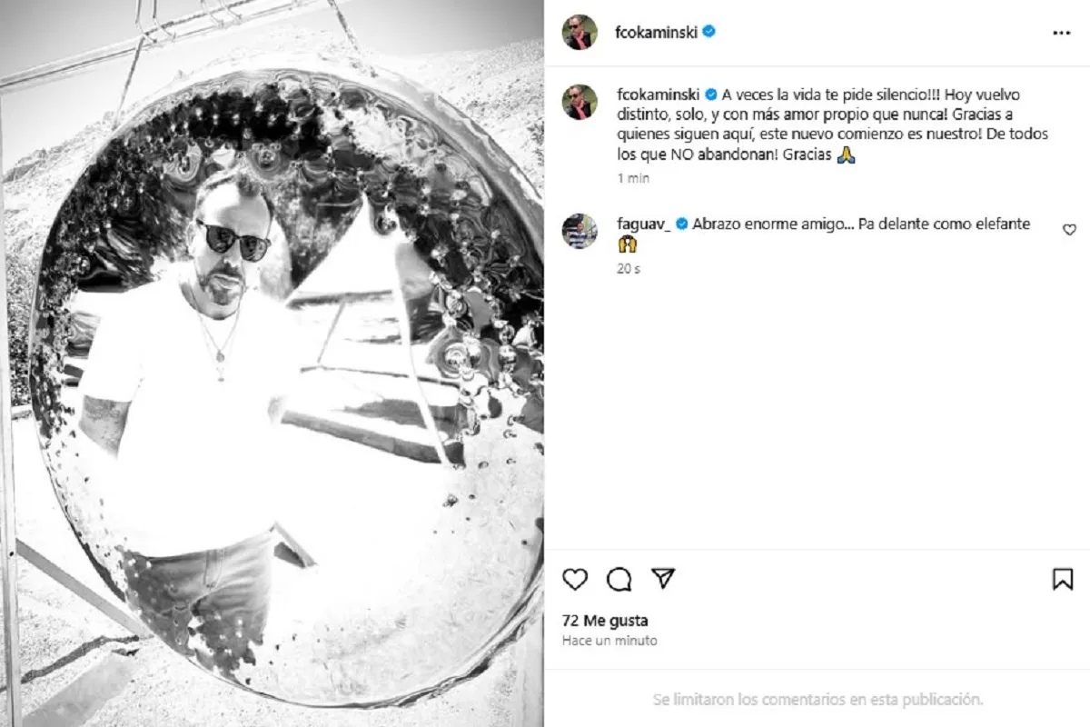 Francisco Kaminski reapareció en redes sociales en medio de un duro presente tras ser vinculado al crimen de José Felipe Reyes Ossa, el ‘Rey de Meiggs’. Declaró ante la Fiscalía como testigo por una llamada con el fallecido empresario. Se destaparon millonarias deudas de la expareja de Carla Jara y la Contraloría detectó irregularidades en el Festival Guatón Loyola, donde su productora está implicada. Además, se rumora que terminó su relación con Camila Andrade. Kaminski volvió a Instagram con un mensaje de autosuperación y agradeció el apoyo de sus seres queridos.