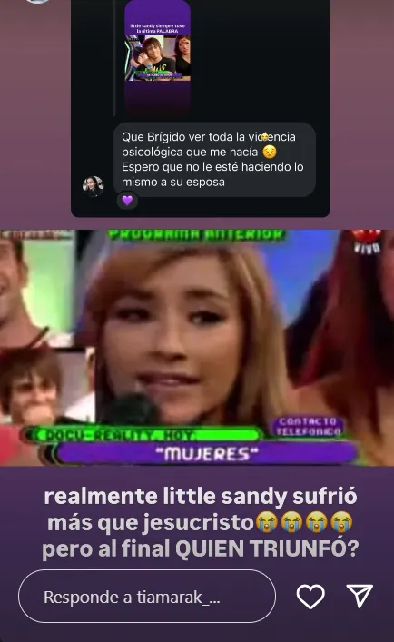 En las historias de una cuenta de Instagram, identificada como Tiamarak_, compartieron un mensaje que llegó al extinto programa juvenil. Allí, una mujer aseguraba que había estado con Karol, cuando él era novio de Arenita.
