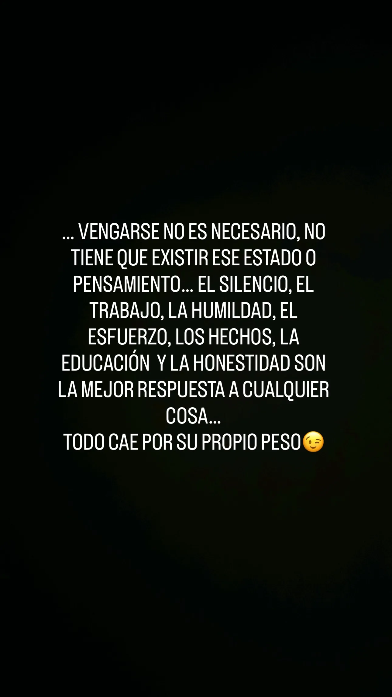 "Vengarse no es necesario, no tiene que existir ese estado o pensamiento. El silencio, el trabajo, la humildad, el esfuerzo, los hechos, la educación y la honestidad son la mejor respuesta a cualquier cosa. Todo cae por su propio peso".