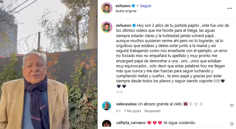 "Hoy son 2 años de tu partida papito. Este fue uno de los últimos videos que me hiciste para el Mega", partió señalando el comunicador.