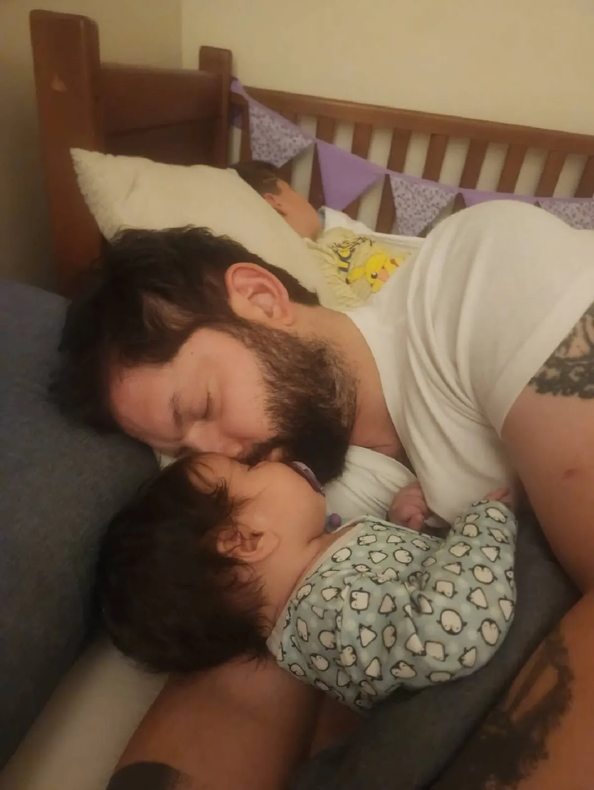 "Con ustedes toda la vida", redactó en la publicación, donde subió un registro en el que aparece durmiendo entre Violeta y el hijo mayor de su pareja, Paula Carrasco.