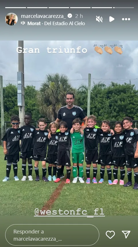 Al final, Marcela publicó una foto de su hijo junto a sus compañeros de equipo y el entrenador.