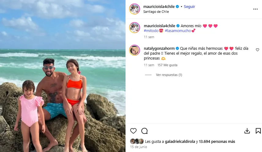 El futbolista Mauricio 'Huaso' Isla comparte emotivas postales de sus hijas Martina Isabella y Luz Elif, fruto de distintas relaciones. Martina, de 10 años, vive en Estados Unidos con su madre, mientras que Luz Elif, de 7 años, reside en Chile junto a su madre, Gala Caldirola. Isla se muestra afectuoso en redes sociales, expresando su amor por las niñas y la nostalgia por la distancia que las separa, demostrando su compromiso como padre.