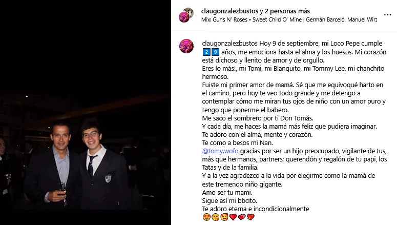 "¡Eres lo más! Mi Tomi, mi Blanquito, mi Tommy Lee, mi chanchito hermoso. Fuiste mi primer amor de mamá", agregó.