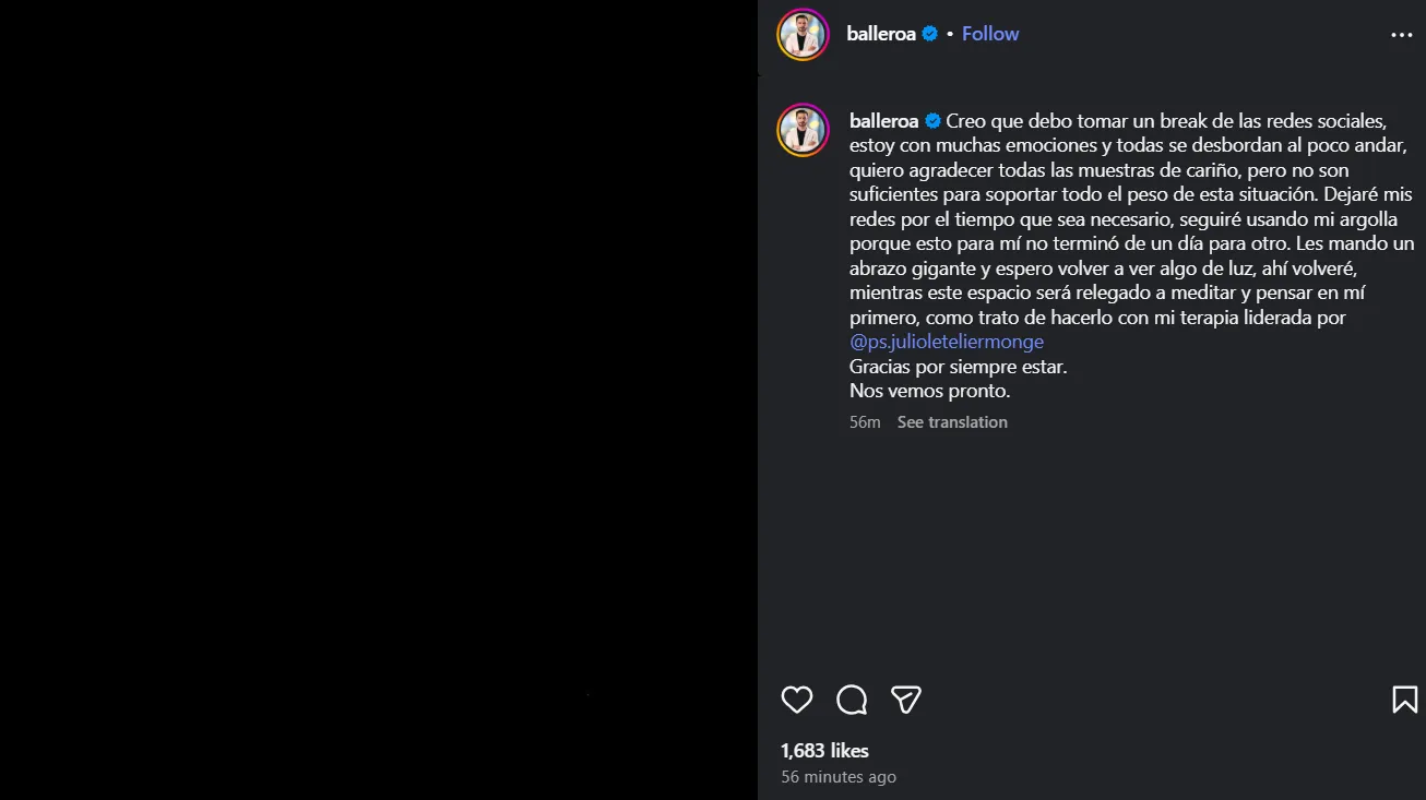 Cabe mencionar que entre sus últimos posts, Balllero también llamó la atención al dar un importante aviso.