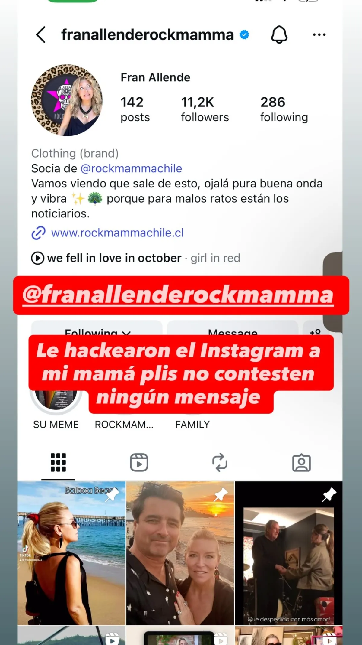 Francisca Allende recalcó que los autores del hackeo “son estos chu... de sus madres, que están tratando de robar plata, a gente que está en mi WhatsApp y en mis contactos”.
