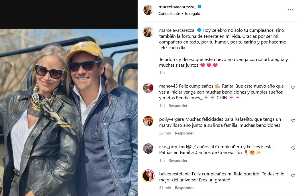 Marcela Vacarezza dedicó un tierno saludo a su esposo, el reconocido animador Rafael Araneda, por su cumpleaños número 56. A través de redes sociales, Vacarezza expresó su amor y gratitud hacia Araneda, compartiendo emotivas palabras y fotografías juntos. Los seguidores reaccionaron con buenos deseos hacia el comunicador, destacando la unión y amor de la familia que han construido en sus 25 años de matrimonio junto a sus cuatro hijos.