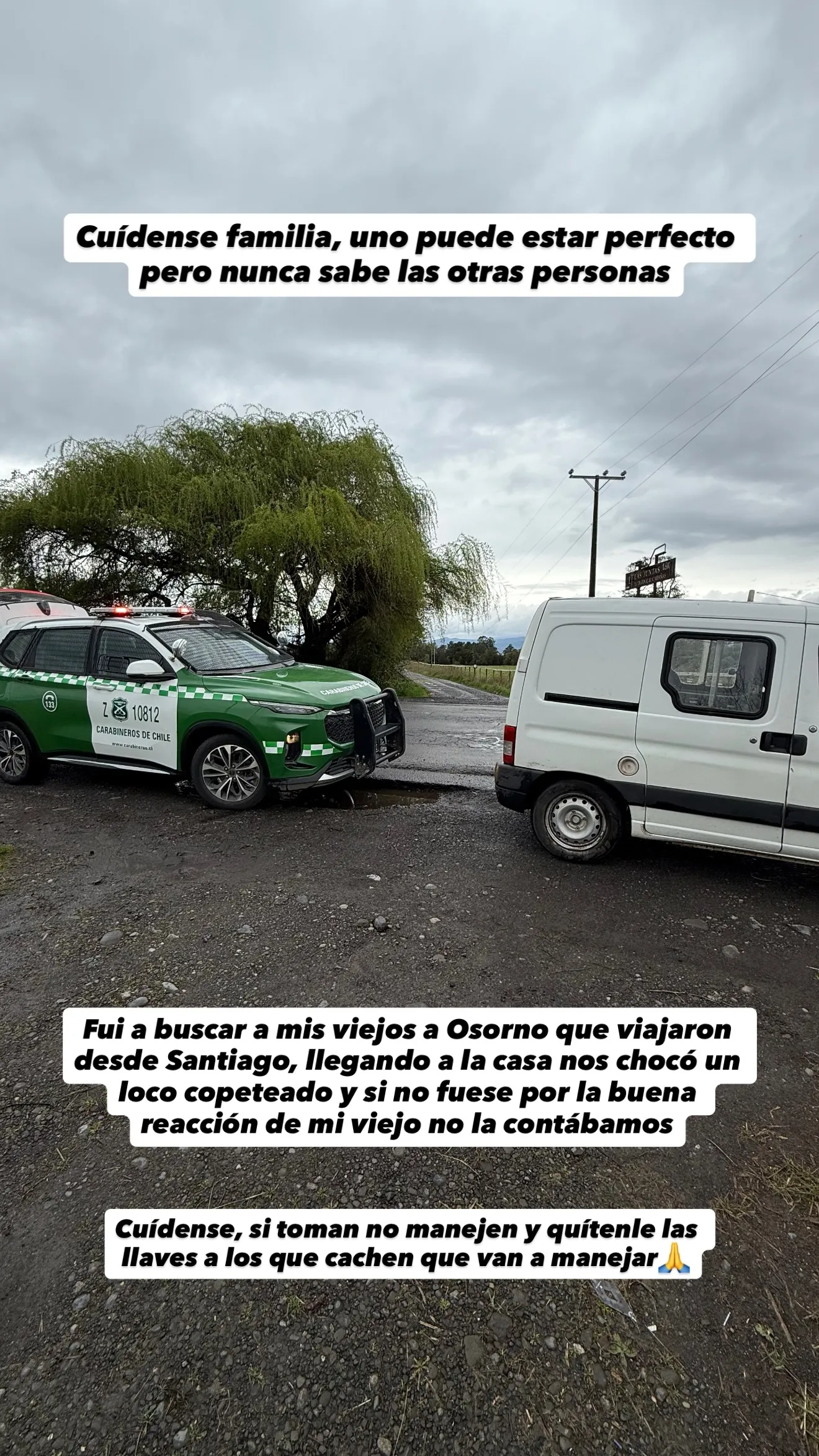 “Fui a buscar a mis viejos a Osorno que viajaron desde Santiago, llegando a la casa nos chocó un loco copeteado y si no fuese por la buena reacción de mi viejo no la contábamos”, añadió Lucas Nervi.