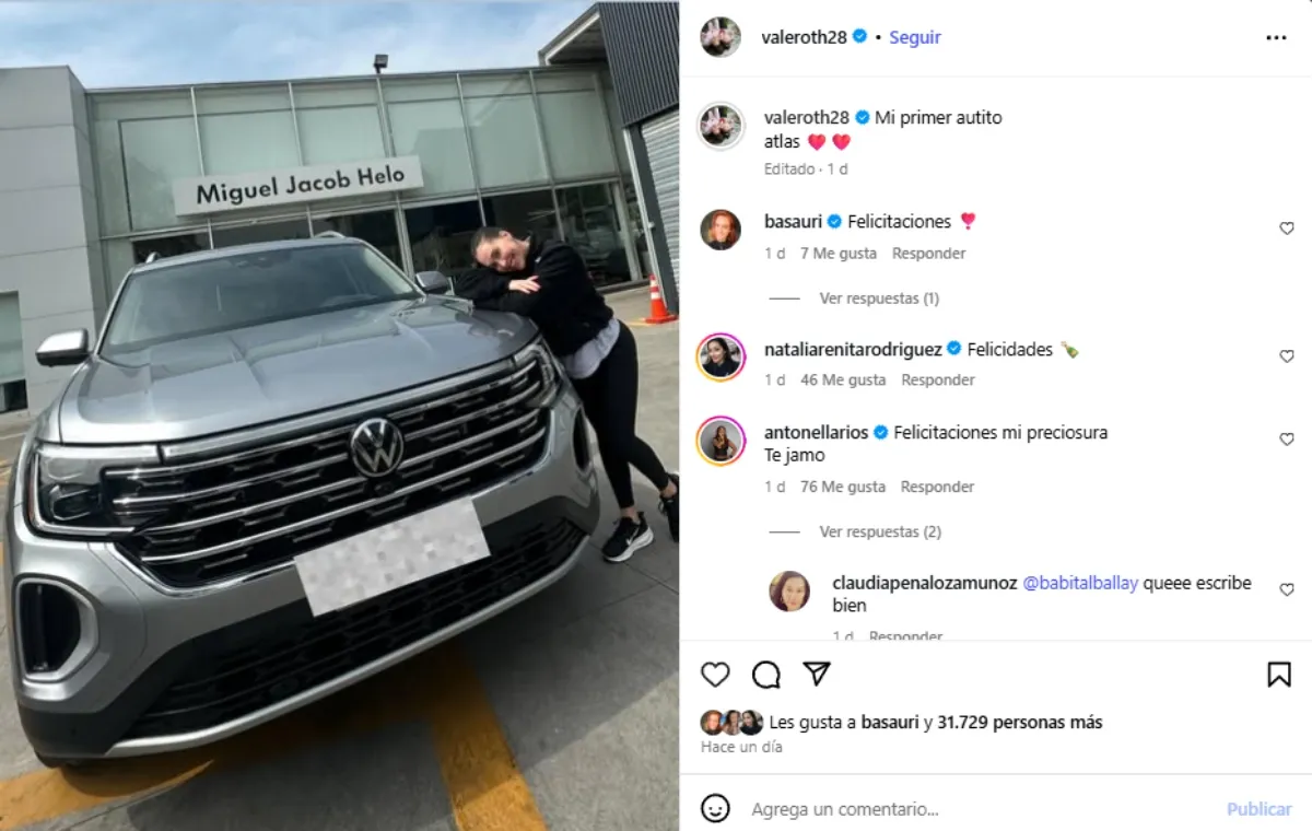 Hace unas semanas, vimos en sus redes sociales a Vale Roth realizando sus clases de manejo. Ahora, mostró que se compró su primer vehículo.