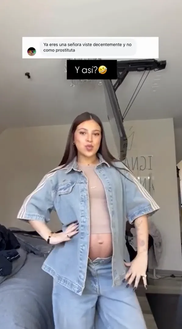 La influencer Ignacia Antonia expuso a un usuario que la criticó por su forma de vestir, compartiendo el comentario negativo en sus redes sociales. En respuesta, la joven, embarazada de AK4:20, publicó un video luciendo una chaqueta y pantalón de mezclilla, desafiando la crítica con elegancia y mostrando su avanzado estado de gestación a sus más de 10 millones de seguidores en Instagram.