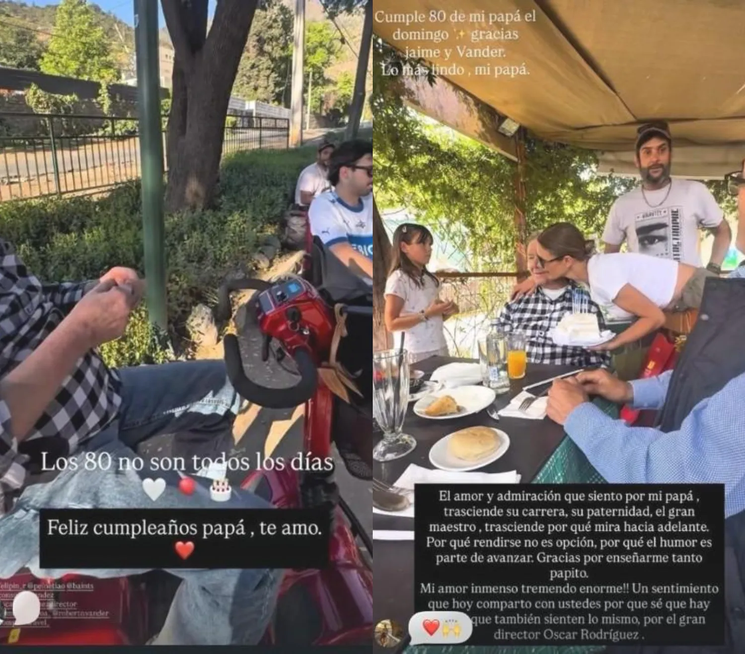 La actriz Mayte Rodríguez emocionó a sus seguidores al compartir entrañables momentos familiares junto a su padre, el famoso director de teleseries chilenas Óscar Rodríguez, en celebración de sus 80 años. A través de Instagram, Mayte expresó su amor y admiración por su padre, destacando su legado en la televisión chilena con producciones icónicas de los años 80 y 90. Óscar Rodríguez, reconocido como una figura clave en la historia televisiva del país, también es recordado por su relación con la actriz Carolina Arregui, con quien tuvo tres hijos, incluida Mayte.