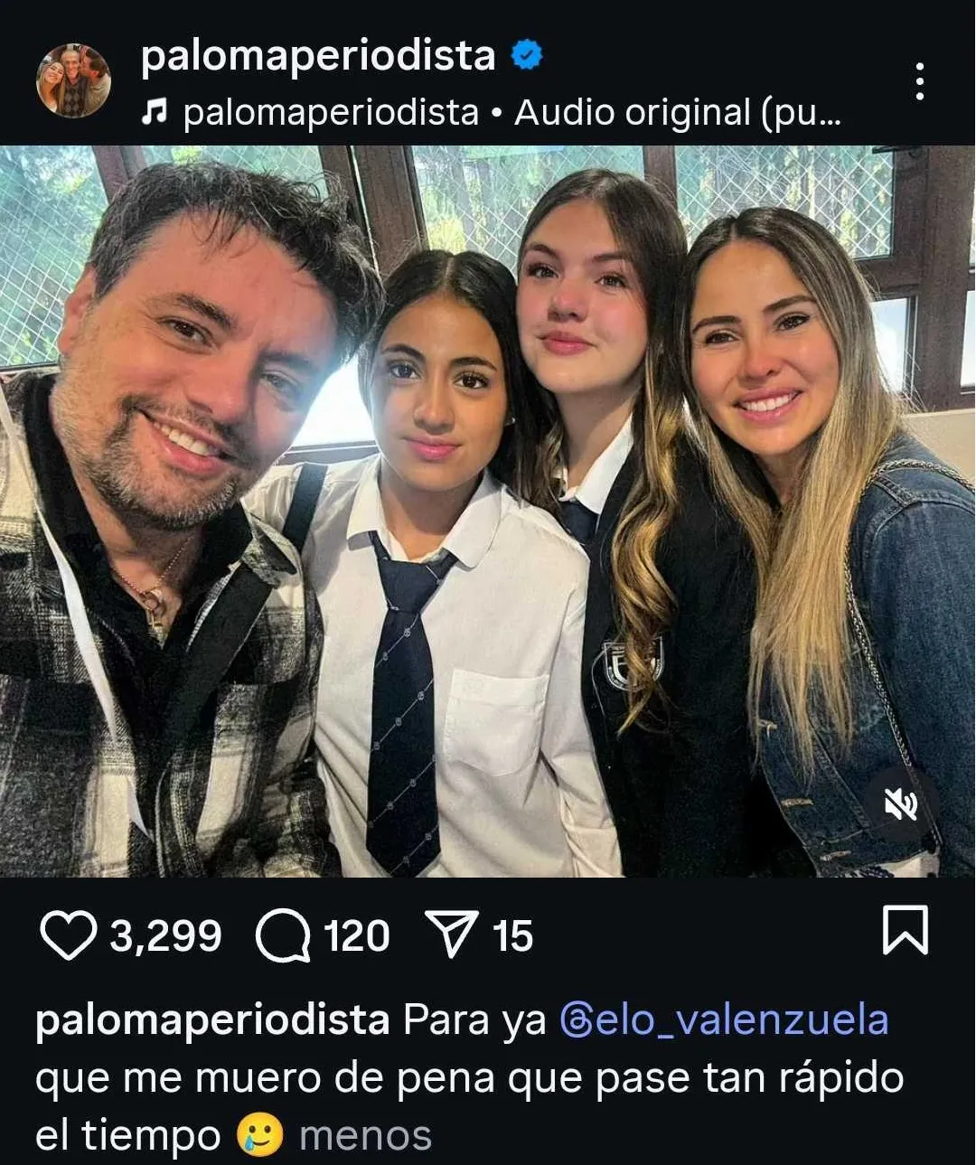 Por su parte, Paloma compartió un video en el que compiló varios emotivos momentos junto a Elo. "¡Para ya! Que me muero de pena que pase tan rápido el tiempo", escribió la periodista a su hija.