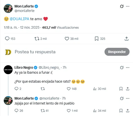 Un pequeño detalle que llamó la atención tanto en los fans de Dua Lipa como de Mon Laferte, fue un particular posteo en X (antes Twitter).