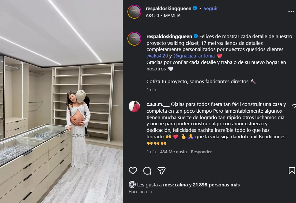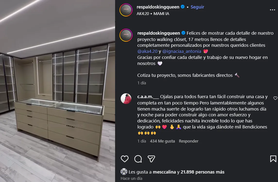 "Felices de mostrar cada detalle de nuestro proyecto walking closet, 17 metros llenos de detalles completamente personalizados por nuestros queridos clientes", escribieron.