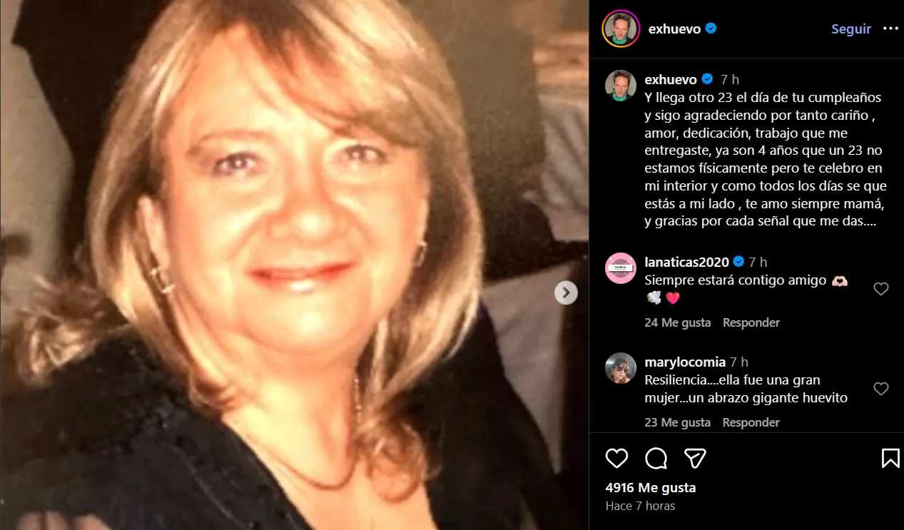 En esa línea, Daniel Fuenzalida destacó el impacto del recuerdo de su mamá en su vida: "Ya son 4 años que un 23 no estamos físicamente, pero te celebro en mi interior y, como todos los días, sé que estás a mi lado".