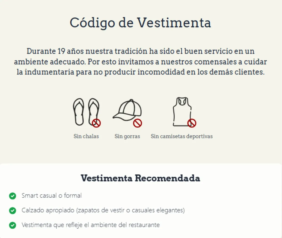 “Queremos aclarar que este es un código de vestimenta informado por el restaurante a través de su carta digital y en las pizarras del restaurante, y en vigencia hace años”, indicaron.