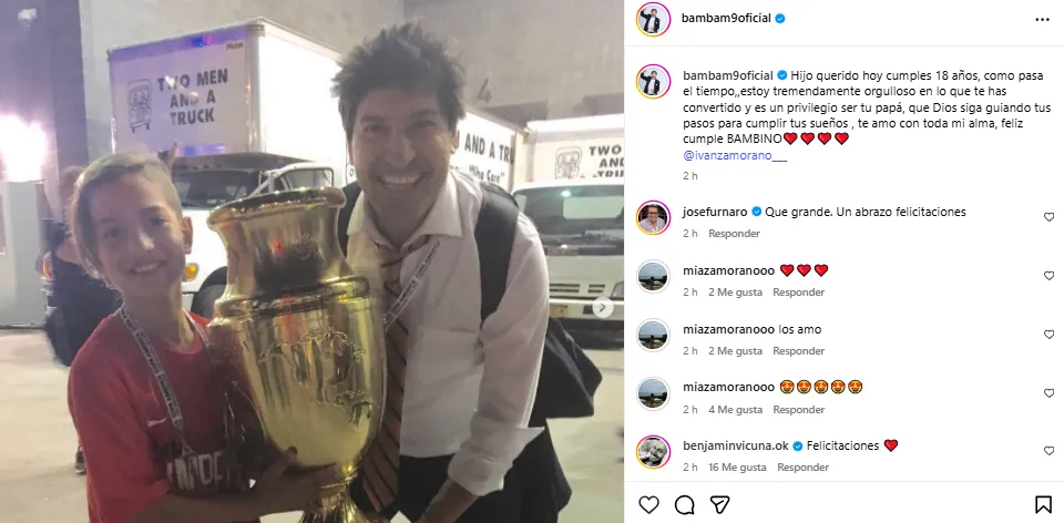 Para cerrar, Iván Zamorano concluyó el mensaje con el cariñoso apodo que le tiene a su hijo, quien lleva el mismo nombre. "Feliz cumpleaños, Bambino", concluyó.