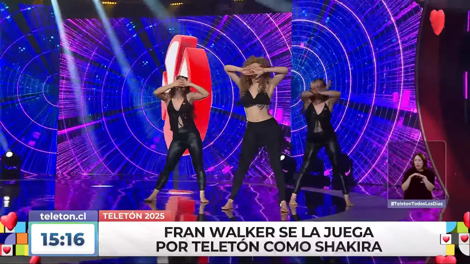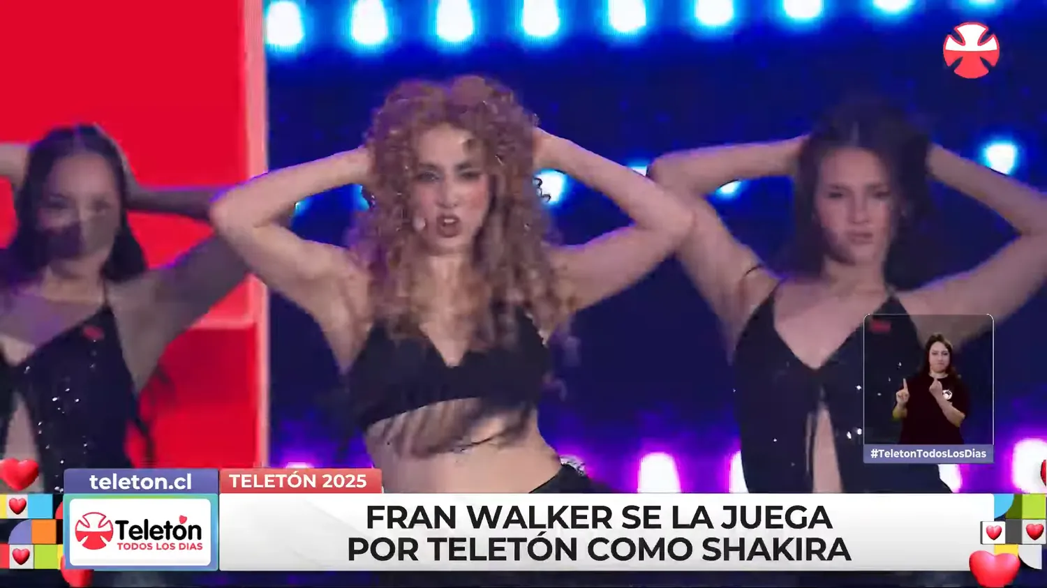 La actriz chilena Fran Walker se unió a la Teletón en un bloque musical donde interpretó a Shakira con una coreografía y caracterización fiel al estilo de la cantante colombiana. En su participación, recibió elogios en redes sociales por su talento y estilo propio. Otros rostros conocidos como Claudio Olate, Claudio Castellón, Carmen Gloria Bresky y Fernanda Finsterbusch también brillaron en este evento solidario.