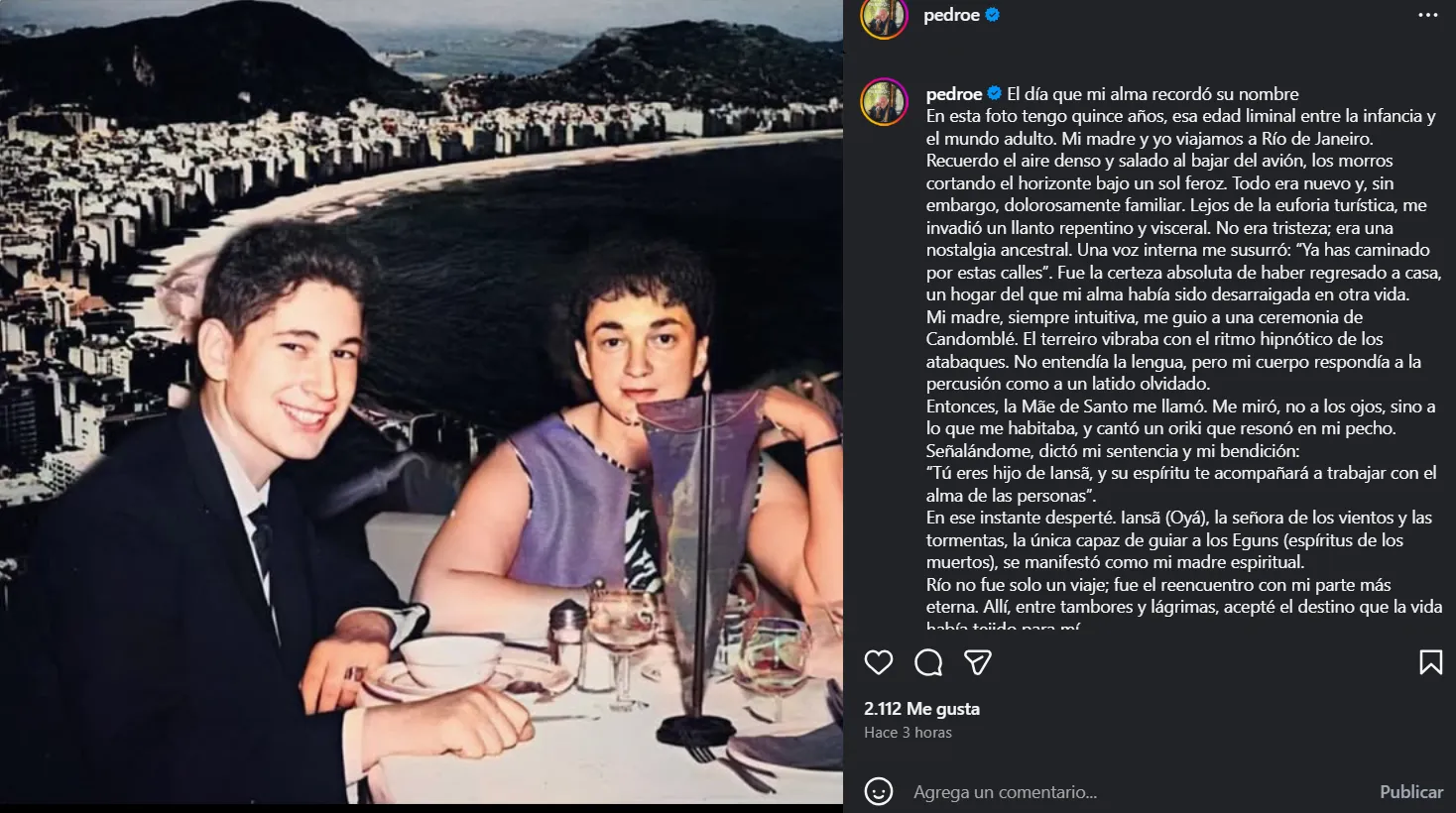 Pedro recordó cómo su madre identificó el sentir de su hijo y lo llevó a una ceremonia de Candomblé, ritual brasileño que busca la armonía y el equilibrio.